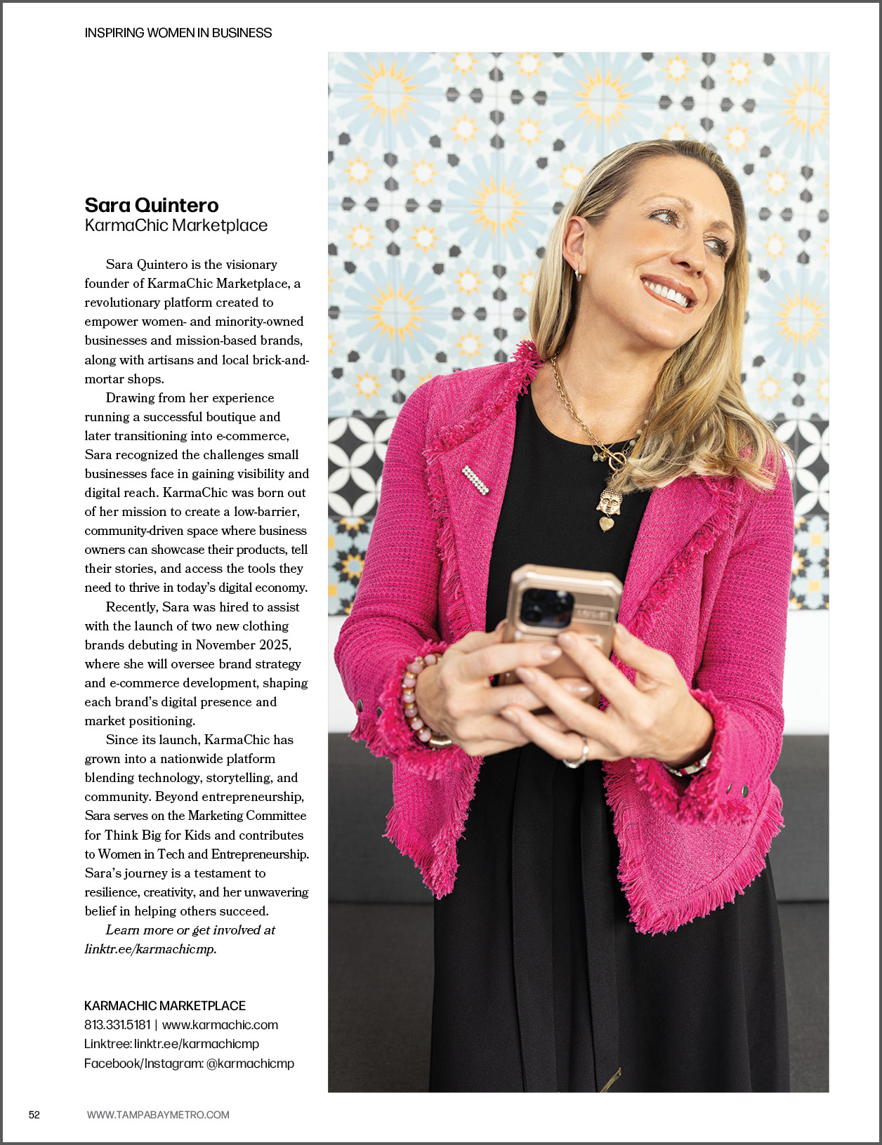 Sara Quintero is the visionary founder of KarmaChic Marketplace, a revolutionary platform created to empower women- and minority-owned businesses and mission-based brands, along with artisans and local brick-and-mortar shops.