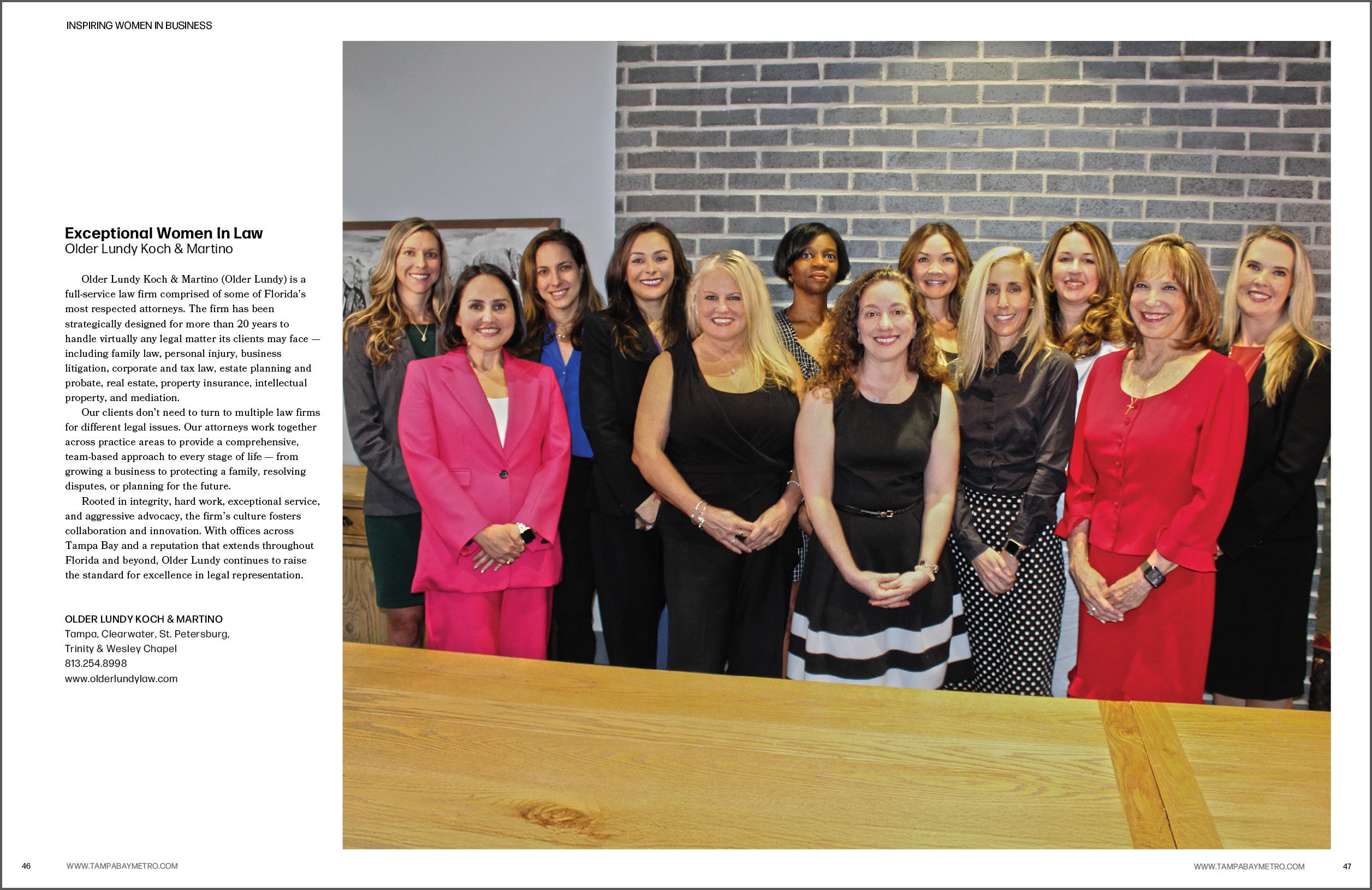 Rooted in integrity, hard work, exceptional service, and aggressive advocacy, the firm’s culture fosters collaboration and innovation. With offices across Tampa Bay and a reputation that extends throughout Florida and beyond, Older Lundy continues to raise the standard for excellence in legal representation.