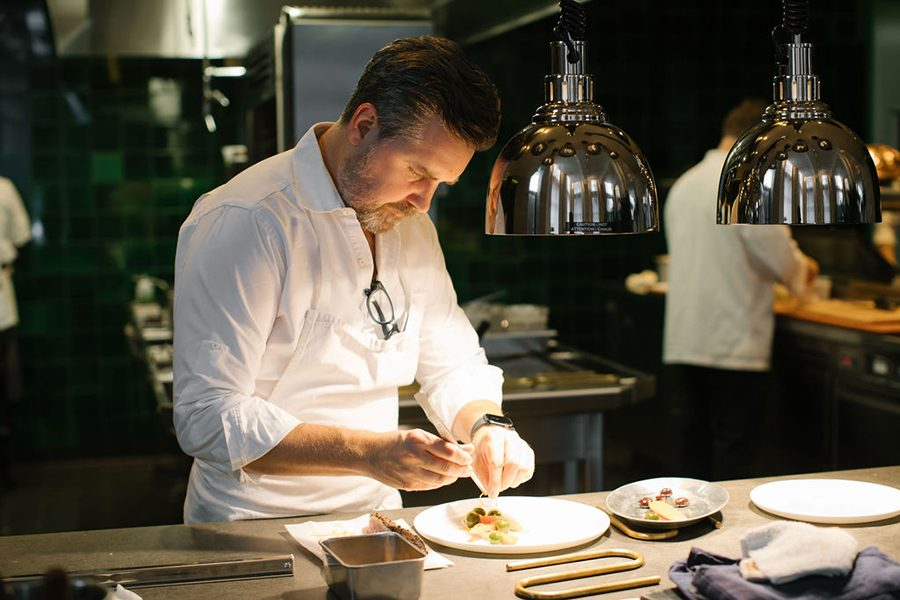 Chef John Fraser adds the finishing touches to an entrée at Lilac
